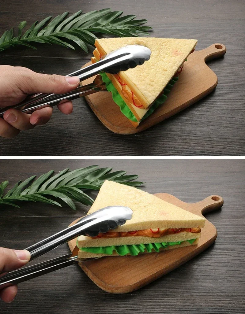 Silver Stainless Steel Tool Kitchen Food Tong Heat Bread Salad BBQ Cooking Serving Utensil Meat Barbecue Clamp Kitchen Accessory