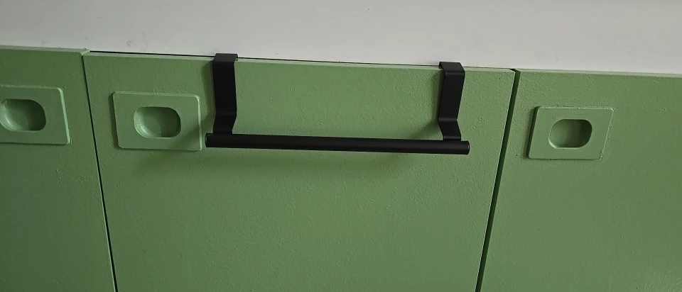 Hangs over kitchen cabinets for hassle-free installation with no hardware or tools required; Fits over most cabinet doors and drawers; Perfect for using inside cabinet and cupboard doors for out of the way, discreet storage without the worry of creating holes in the door.